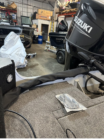 Introducing Flack Jaket Rigging Covers. Using our canvas like material we made an adjustable cable cover to go over your boat's rigging cables from back by the boat motor to storage lockers anywhere cables are visible. This will keep your cables protected and organized and out of the way.
